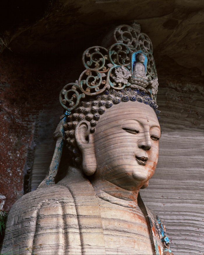虎头山脉层恋叠翠,群山拱衬,独虎头山雄踞其中,形似猛虎视诸峰。山上古道壁立,环山佛像林列。现寺存唐、宋摩崖造像63尊,共13窟,圆雕石像31尊,其中5至7米的8尊,1至4米的造像50余尊,碑刻19通,题记4处。造像数目虽不很多,但规模十分宏大,皆雕刻于顶峰绝壁,雄伟壮观,艺术精湛,是极有价值的摩崖石刻精品。