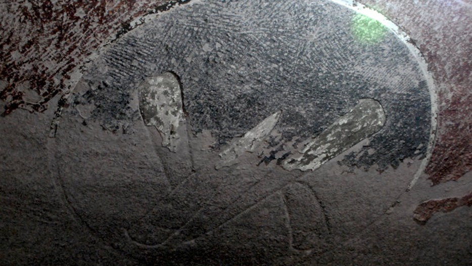安岳华严洞为国家级文保单位,它的右侧约二十米处有一小洞(当地人称华严洞为大洞),叫“大般若洞”。洞内为南宋儒、释、道三教合龛造像,洞为方形平顶,顶正中阴刻一巨大圆圈,圈中阴线勾刻颠倒的两个人字。当地老百姓中流传“两个人字颠倒